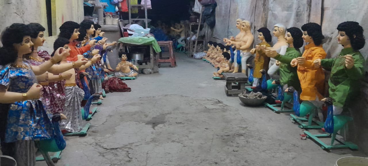 তাই কুমারটুলিতে চলছে তোড়জোর কার্তিক প্রতিমা শেষ করার কাজ।, শুধু কুমারটুলি পাড়ায় নয়, বাজারে বাজারে কার্তিক সাজিয়ে বসে বিক্রেতারা, তবে এখনো পর্যন্ত তেমনভাবে চোখে পড়েনি ক্রেতাদের, দুই একজন করে আসছে‌ কার্তিক প্রতিমা তিনটি।